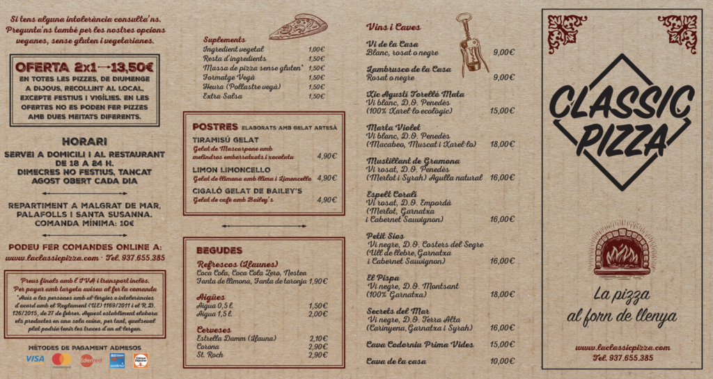 Welcome to Classic Pizza - Barcelona, where authentic Italian flavors meet local freshness in a cozy setting on Carrer Fonlladosa, Malgrat de Mar. This charming eatery has garnered acclaim for its freshly cooked pizzas and attentive service. Customers rave about the delightful, crispy crusts and the rich, flavorful toppings that define a perfect pizza experience. Whether you're biting into their gluten-free options or enjoying a hearty calzone, like Keith Douglas, you’re guaranteed a memorable meal.